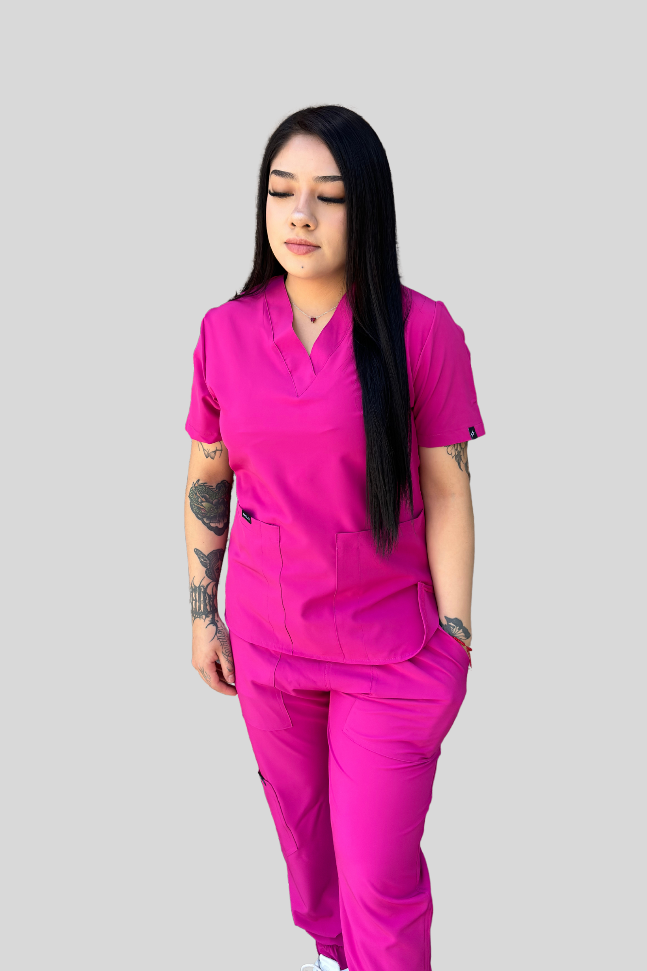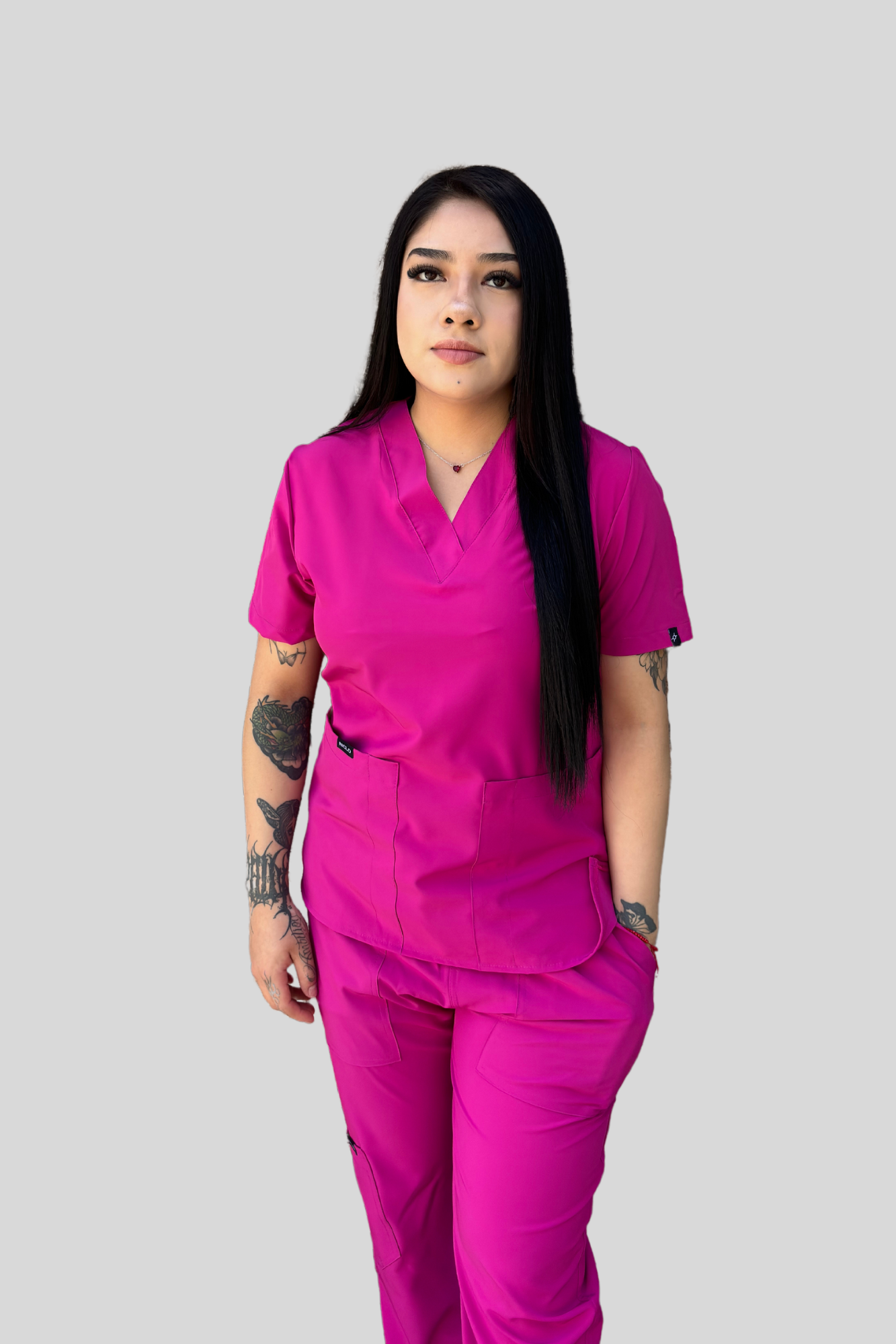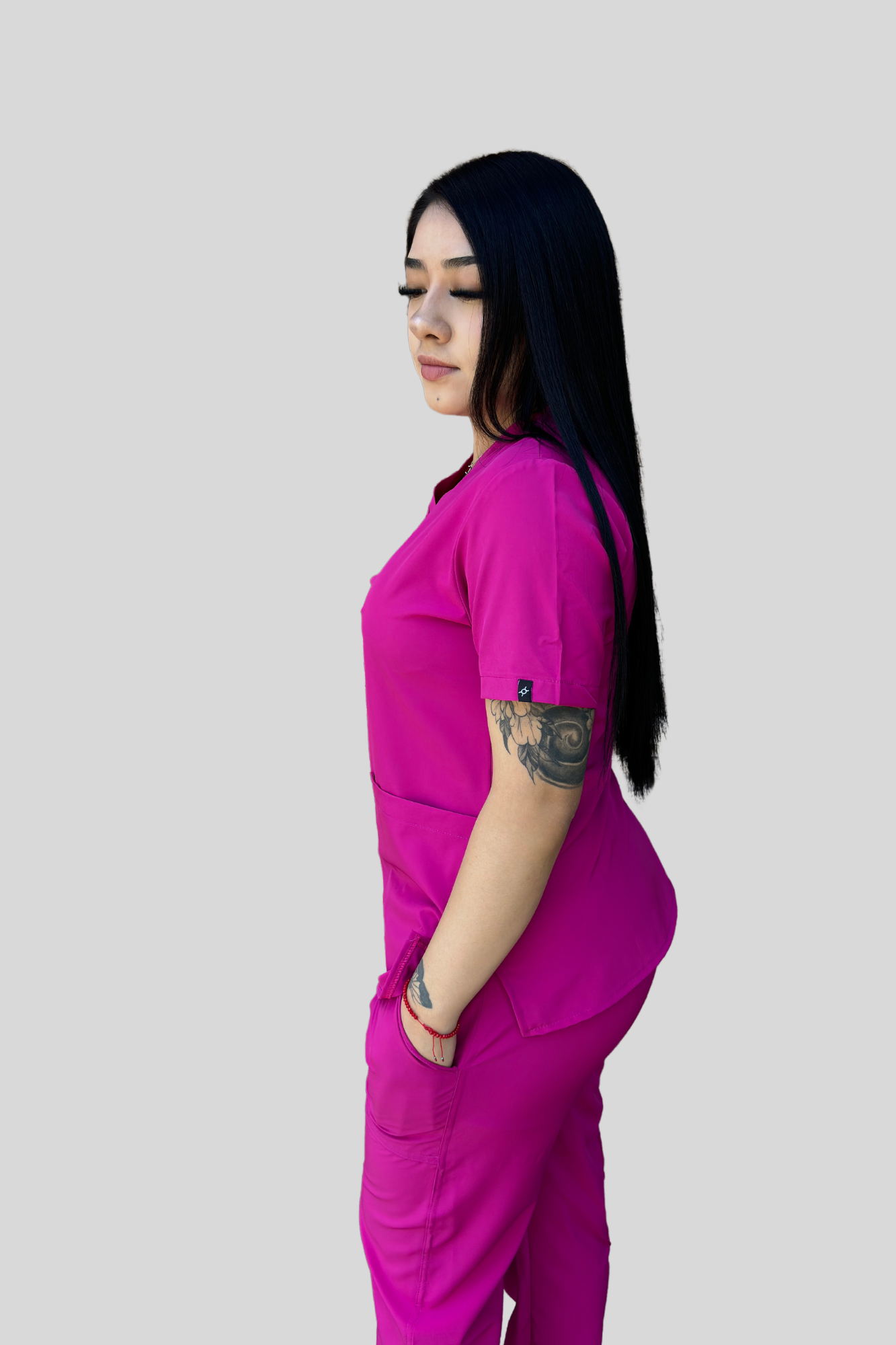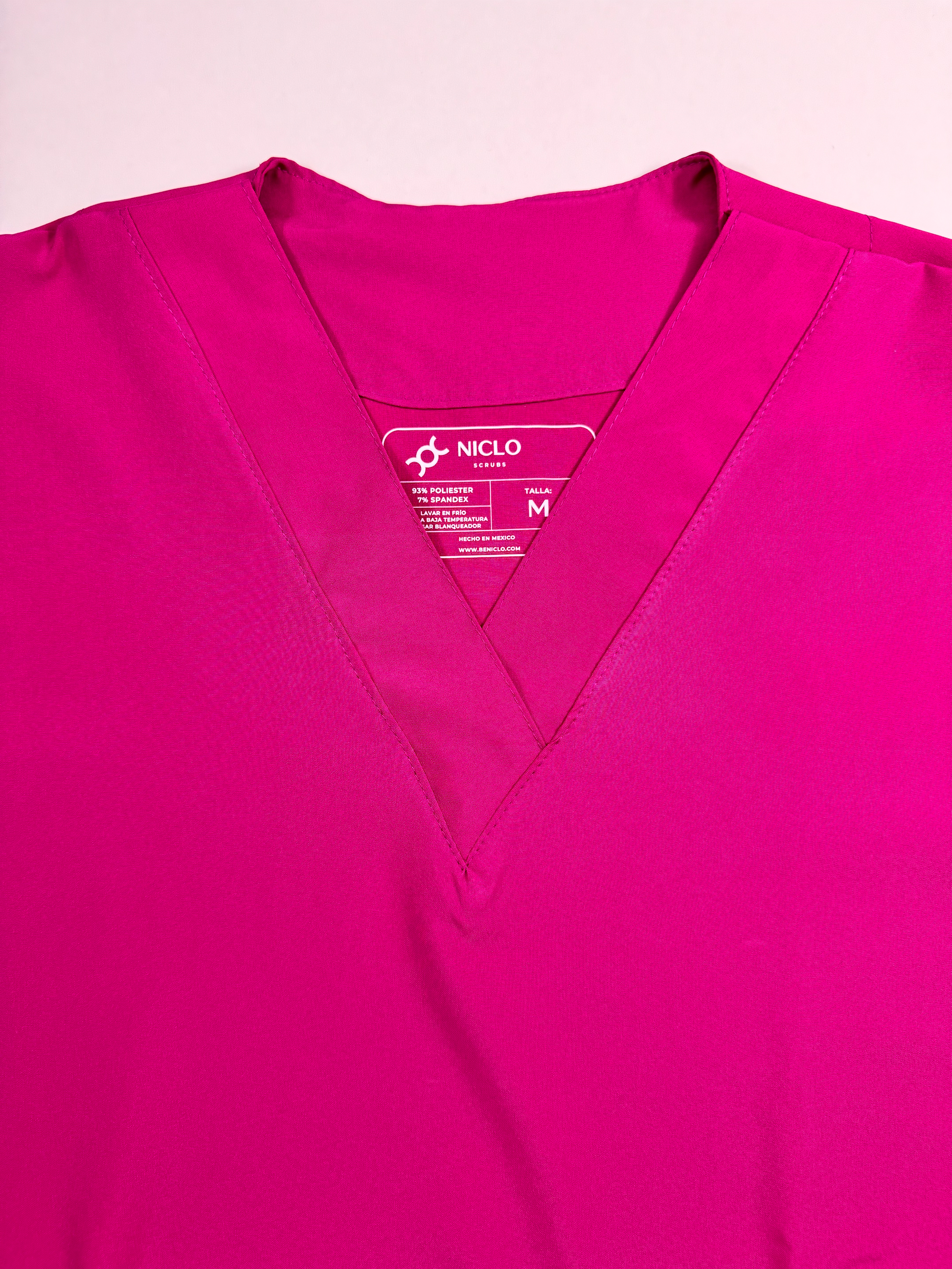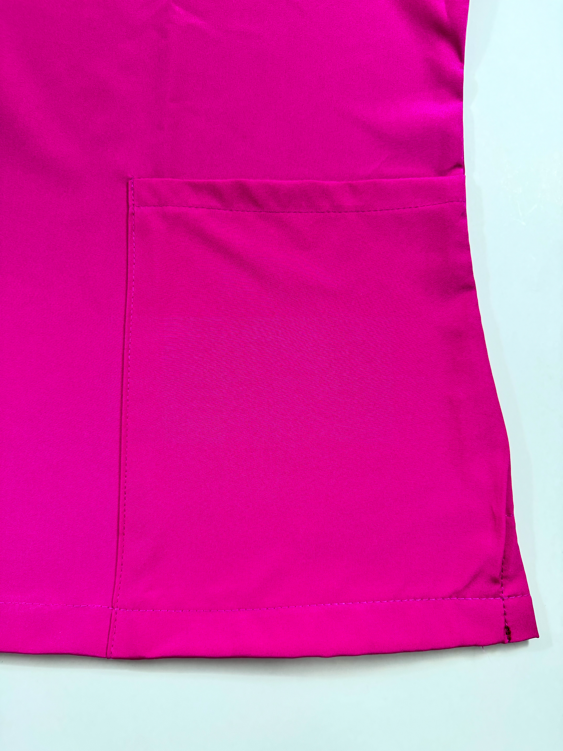 FILIPINA: Corte asiluetado, escote V, manga corta y 2 bolsas laterales
