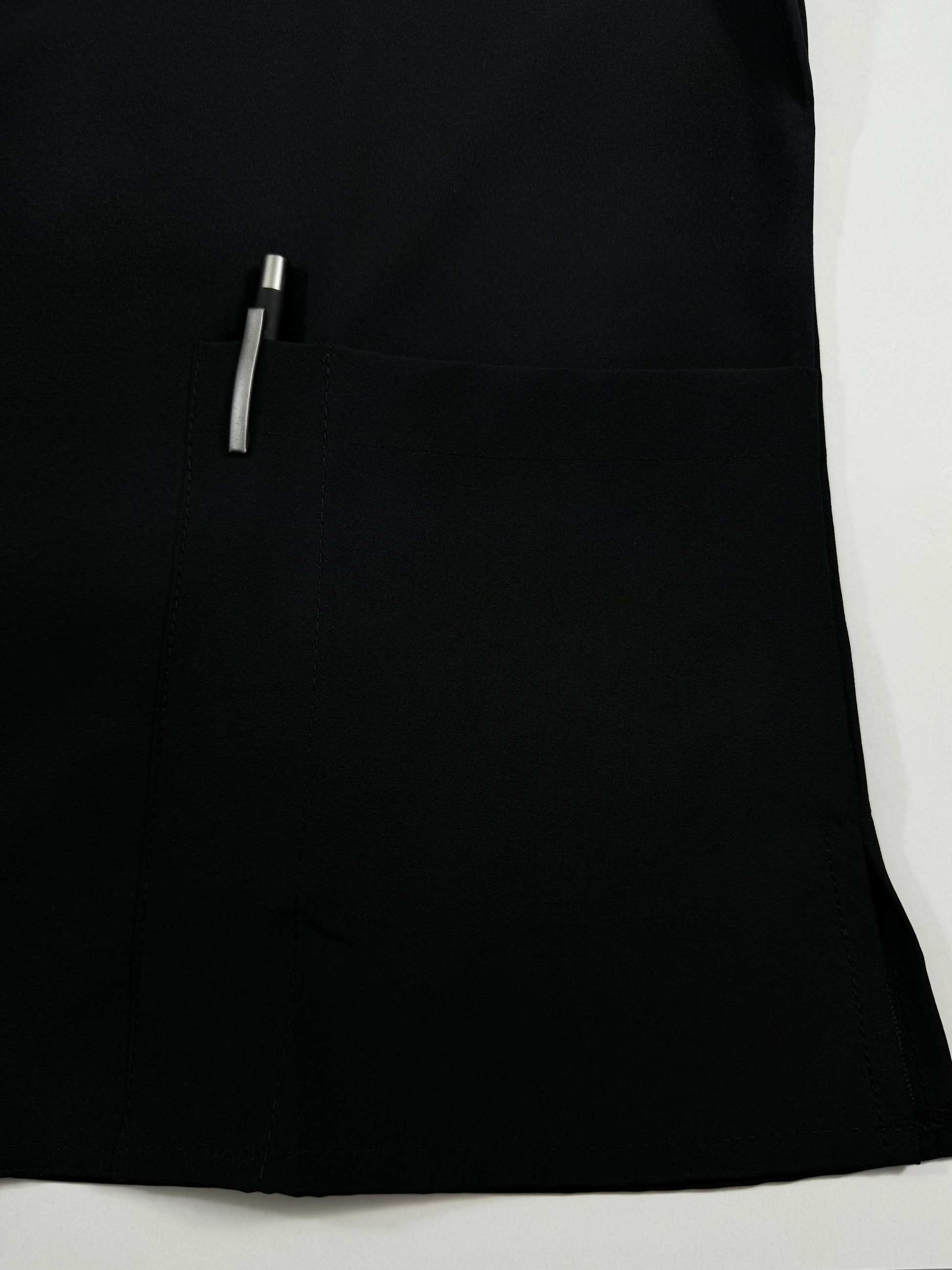 FILIPINA:Corte asiluetado, escote V, manga corta y 2 bolsas laterales